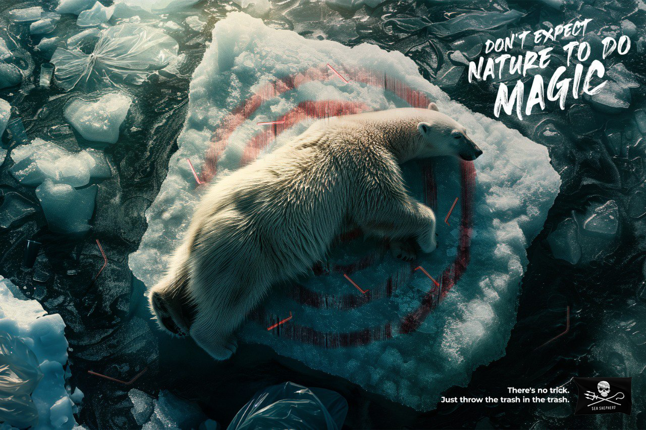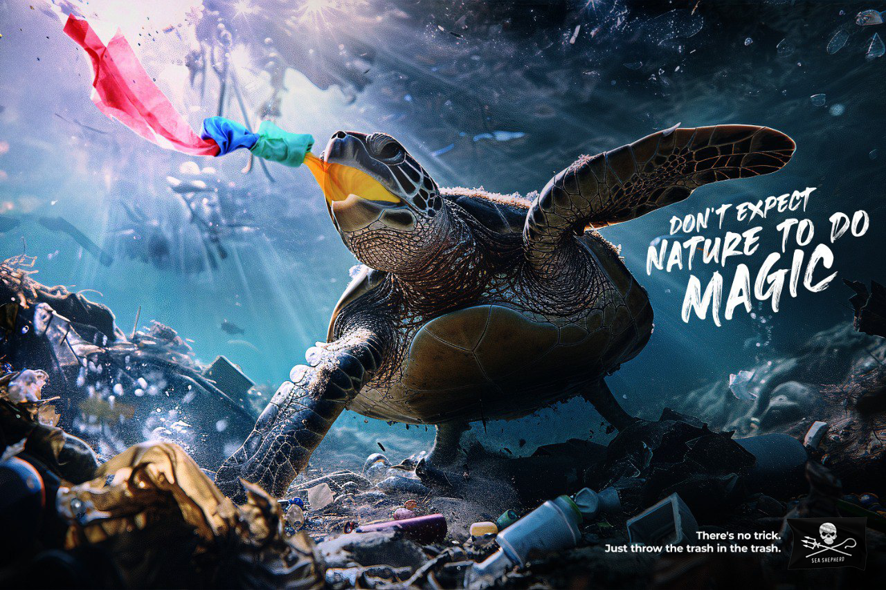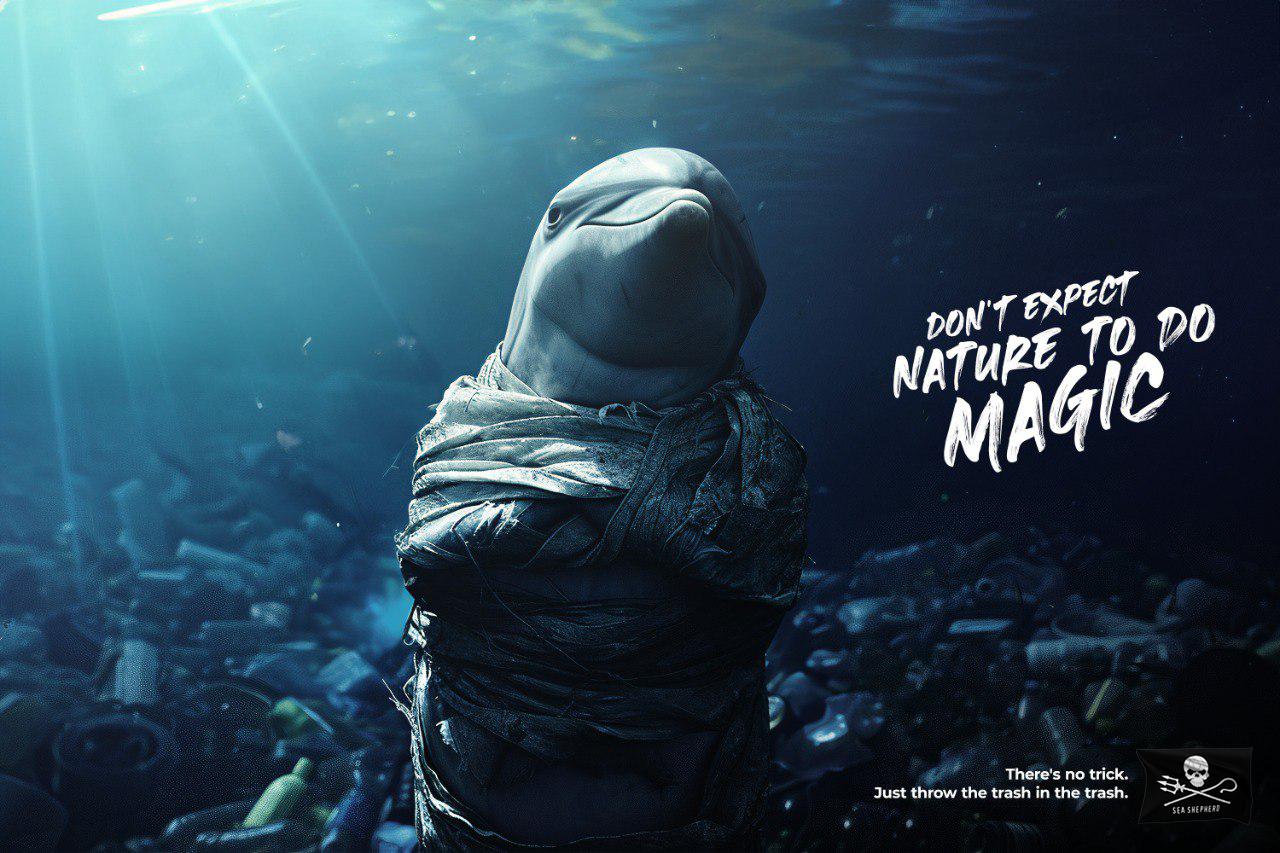 Muita gente não faz a sua parte e espera que a natureza se vire e, literalmente, faça mágica para se livrar das toneladas de lixo despejadas nos oceanos. E é essa atitude que a Sea Shepherd quer combater nessa campanha de prints.